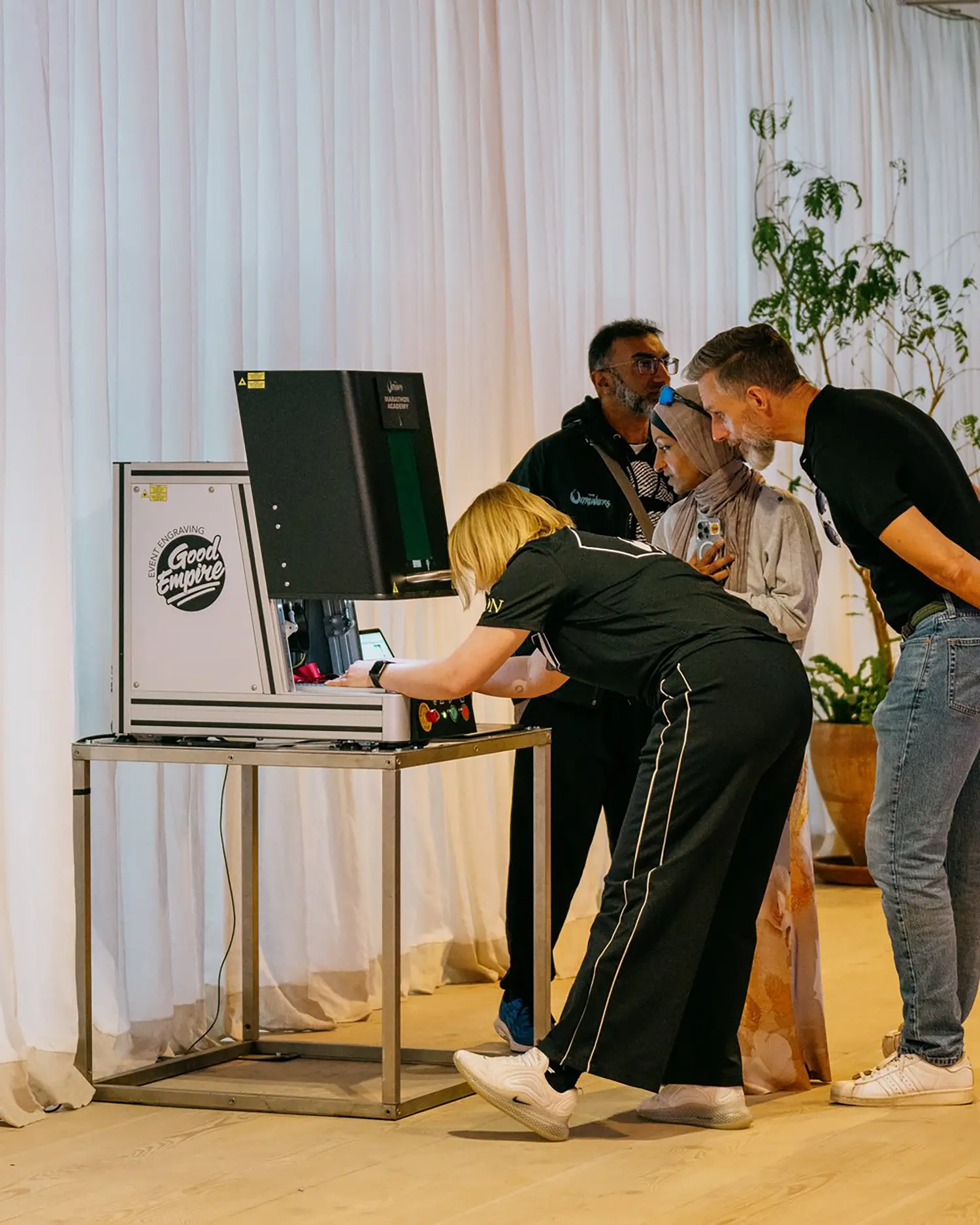 En äkta stationär fiberlasergraveringsmaskin med kapacitet på industriell nivå.